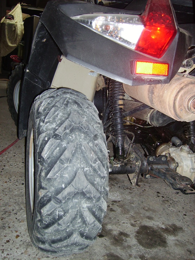 Retour après une petite mission bois à 3 quads, Un Kymco MXER 150, (AU milieu), Un Kymco 250 MXU, (à droite), et mon Kymco 500 MXU (à Gauche)